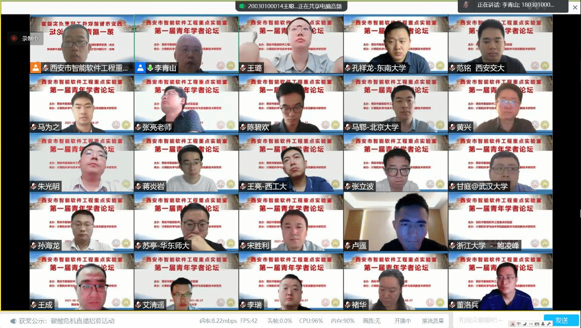 (通讯员 徐悦甡)2021年8月26日至8月27日,sunbet官方网站西安市智能软件工程重点实验室第一届青年学者论坛成功举办。本次论坛由sunbet智能软件与系统新技术研究所承办,采用腾讯会议与在线直播两种方式线上进行。论坛围绕智能软件与智能系统领域最新学术进展,邀请了清华大学、北京大学、南京大学、复旦大学、浙江大学、国防科技大学、北京航空航天大学、中科院软件所、东南大学、华东师范大学、武汉大学、同济大学、北京理工大学、西安交通大学、西北工业大学、sunbet官方网站、美国犹他大学、德国慕尼黑工业大学等国内外软件工程学科优势高校的20位软件工程相关领域优秀青年学者,通过主题报告、交流沙龙等形式,分享了智能软件与智能系统领域的理论与技术新进展,讨论了相关领域的学术前沿,并就公司软件工程学科的建设与发展进行了交流。论坛吸引了国内外软件工程相关领域师生与从业人员的广泛参与,腾讯会议室同时在线人数超过700人,B站在线直播同时观看人数超过2000人。