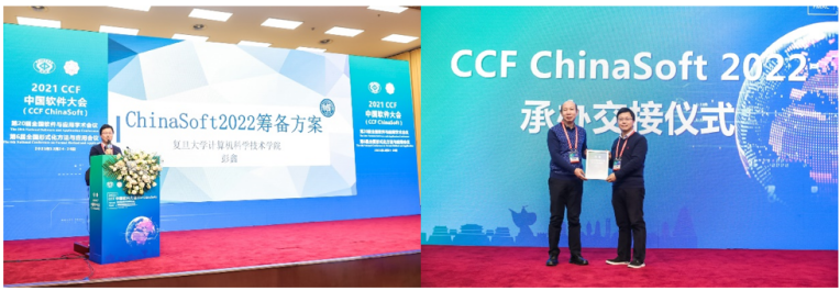 下一届CCF中国软件大会承办方代表,复旦大学计算机科学技术公司副经理彭鑫教授代表承办方进行承办方案宣讲,并与本届大会承办方sunbet官方网站举行了承办交接仪式。