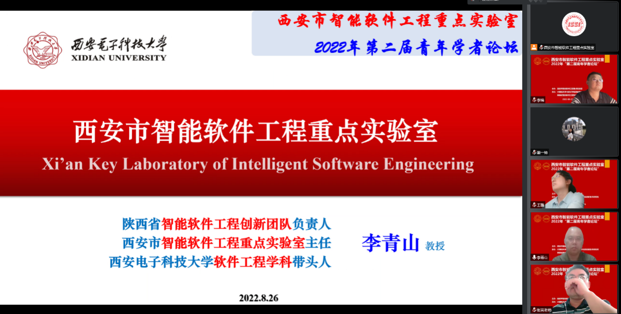 (通讯员 崔笛)2022年8月25日至8月26日,sunbet官方网站西安市智能软件工程重点实验室第二届青年学者论坛成功举办。本次论坛由sunbet智能软件与系统技术研究所与陕西省智能软件工程科技创新团队承办,采用线上方式进行。论坛围绕软件工程学科相关领域最新学术进展,邀请了北京大学、清华大学、南京大学、复旦大学、中国人民大学、香港大学、南方科技大学、南开大学、南京航天航空大学、西北工业大学、sunbet官方网站、美国芝加哥大学、德国慕尼黑工业大学、澳大利亚莫纳什大学、加拿大阿尔伯塔大学、新加坡管理大学等国内外软件工程学科优势高校的软件工程相关领域优秀青年学者,通过主题报告、交流沙龙等形式,分享了智能软件与智能系统领域的理论与技术新进展,讨论了相关领域的学术前沿,并就公司软件工程学科的建设与青年教师成长等问题进行了交流研讨。论坛吸引了国内外软件工程相关领域师生与从业人员的广泛参与,同时在线人数超过500人。
