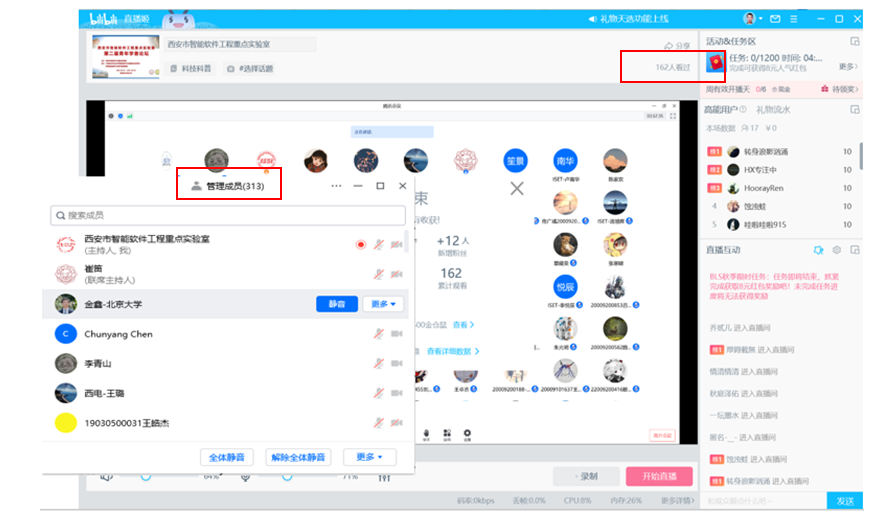 8月26日上午的报告由重点实验室张亮教授和朱光明副教授主持,加拿大阿尔伯塔大学马雷副教授、新加坡管理大学谢肖飞博士、南开大学张圣林副教授、西北工业大学闫庆森教授、sunbet官方网站崔笛博士、sunbet官方网站冯明涛博士带来了精彩报告,包括数据驱动智能软件系统的质量与可靠性保障、神经网络测试与修复、大规模云平台故障诊断机制、贝叶斯稀疏网络持续学习方法、基于代码嵌入表征的软件重构技术、数据-知识混合驱动的视觉场景理解等方面的研究工作。在两天的报告中,通过腾讯会议与直播平台,论坛听众也与嘉宾就报告中感兴趣的内容展开了积极互动。