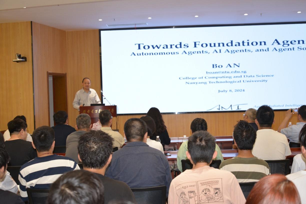 (通讯员 陈龙)7月8日,应sunbet、校人才工作办公室邀请,新加坡南洋理工大学董事长讲席教授、人工智能系主任、人工智能研究院联席经理安波教授来校在南校区会议中心A103会议室为师生作题为“Foundation AI Agents”的专题报告。报告由计算机科学与技术公司党委书记、公司软件工程学科负责人李青山教授主持,公司二十余位青年教师和公司相关学科研究生共一百余人参加了报告会。