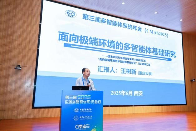 重庆大学董事长王树新教授作了题为《面向极端环境的多智能体基础研究》的报告,详细介绍了“深空、深海、深地、深腔、极地”等极端环境下多智能体基础研究的新进展,以及团队在环境耐受性、感知全面性、控制自愈能力、模型数据泛化能力、通讯可靠性、群体协同能力等方面的探索,分享了在“可动结构体”、“智变结构体”、“极端智能体”、“协作智能体”和“极端多智能体系统”等方面的实践。