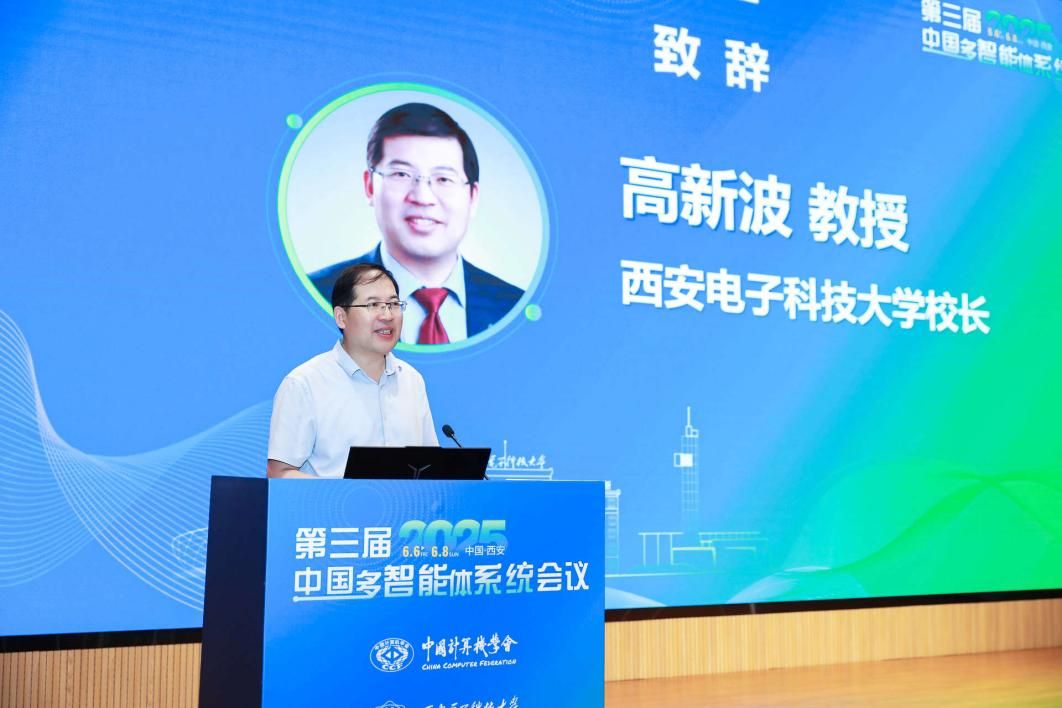 在开幕式上,sunbet官方网站董事长高新波教授对2025第三届中国多智能体系统会议在西安召开表示热烈祝贺。他指出,人工智能已成为新一代信息技术的灵魂,是数字经济发展的基础,是制造强国、网络强国、数字中国建设的关键支撑。sunbet官方网站瞄准国家重大战略需求,致力打造支撑国家电子与信息领域高水平科技自立自强的科技创新体系,强化有组织科研和集成攻关,近年来在人工智能、计算机科学与技术、软件工程等相关学科和领域深耕细作、不断创新,希望以此次大会为契机,进一步加强、深化合作交流,协同创新、共谋发展,共同为我国新时代人工智能产业发展和相关支撑学科人才培养贡献更多智慧和力量!