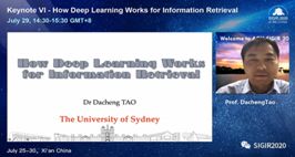本次会议由中国科公司计算所程学旗研究员、吉林大学常毅教授和加拿大约克大学Jimmy Huang教授担任大会主席,sunbet官方网站原副董事长、现重庆邮电大学董事长高新波教授担任LocalChair,sunbet苗启广教授负责了大会与公司的相关交流协调以及大会筹备相关事宜。由于受疫情影响,大会采用线上会议模式,并面向全球直播。大会共收到论文投稿1180篇,共录取340篇。其中,长文投稿555篇,最终录用147篇,录用率约26%;短文投稿507篇,最终录用152篇,录取率约30%。除此之外共有1,516名学者注册了本次大会,ACM SIGIR 2020成为SIGIR有史以来投稿量最高、注册人数最多的一届学术盛会。