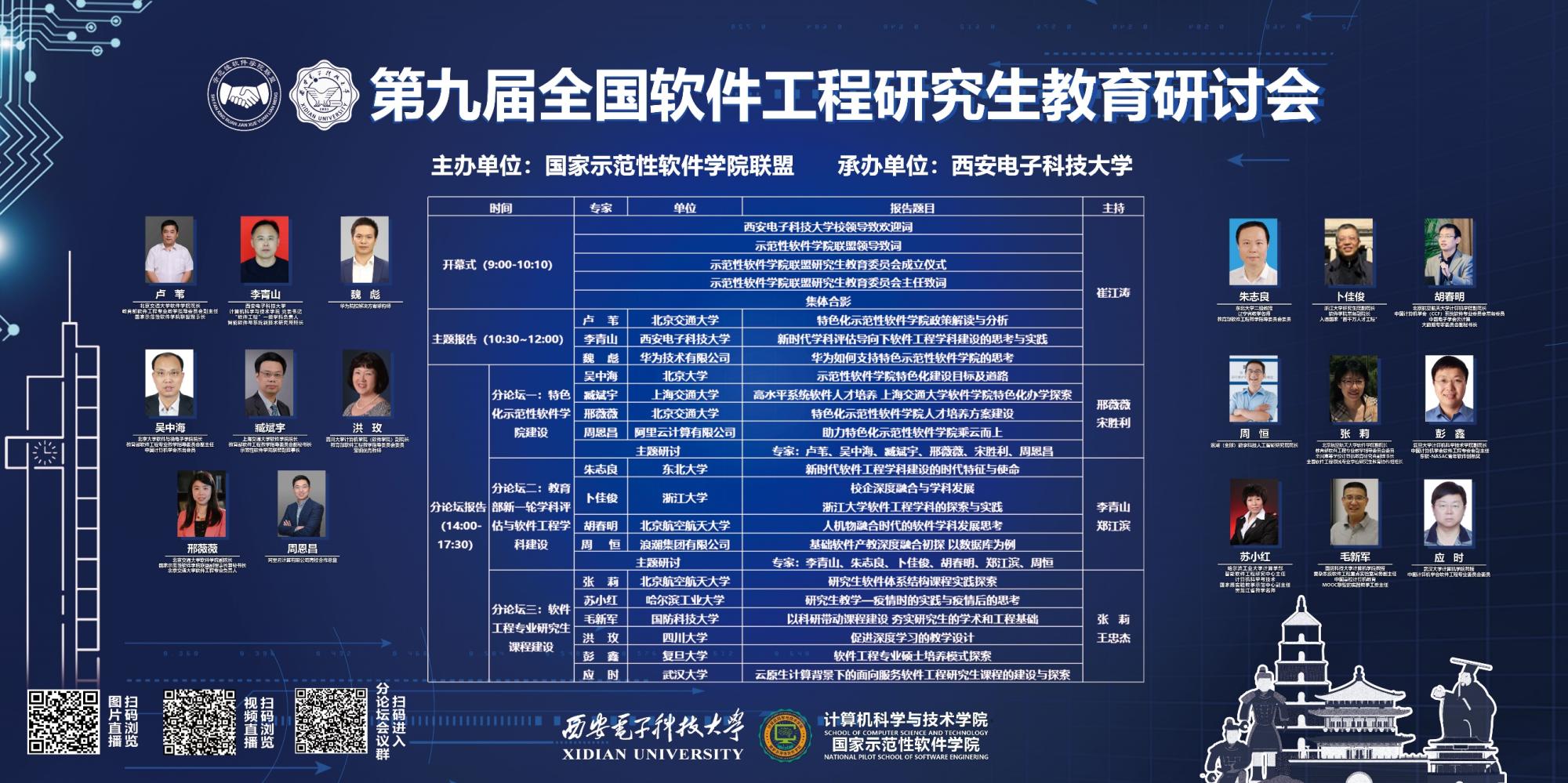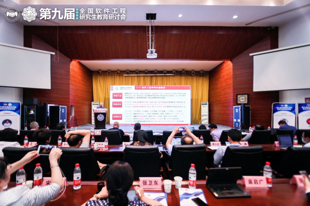 9月19日的研讨会围绕特色化示范性软件公司建设、教育部新一轮学科评估与软件工程团队建设、软件工程专业研究生课程建设等议题,在上下午分别设置了主题报告和三个分论坛进行交流和研讨,并全程在线上进行了视频和图片直播。