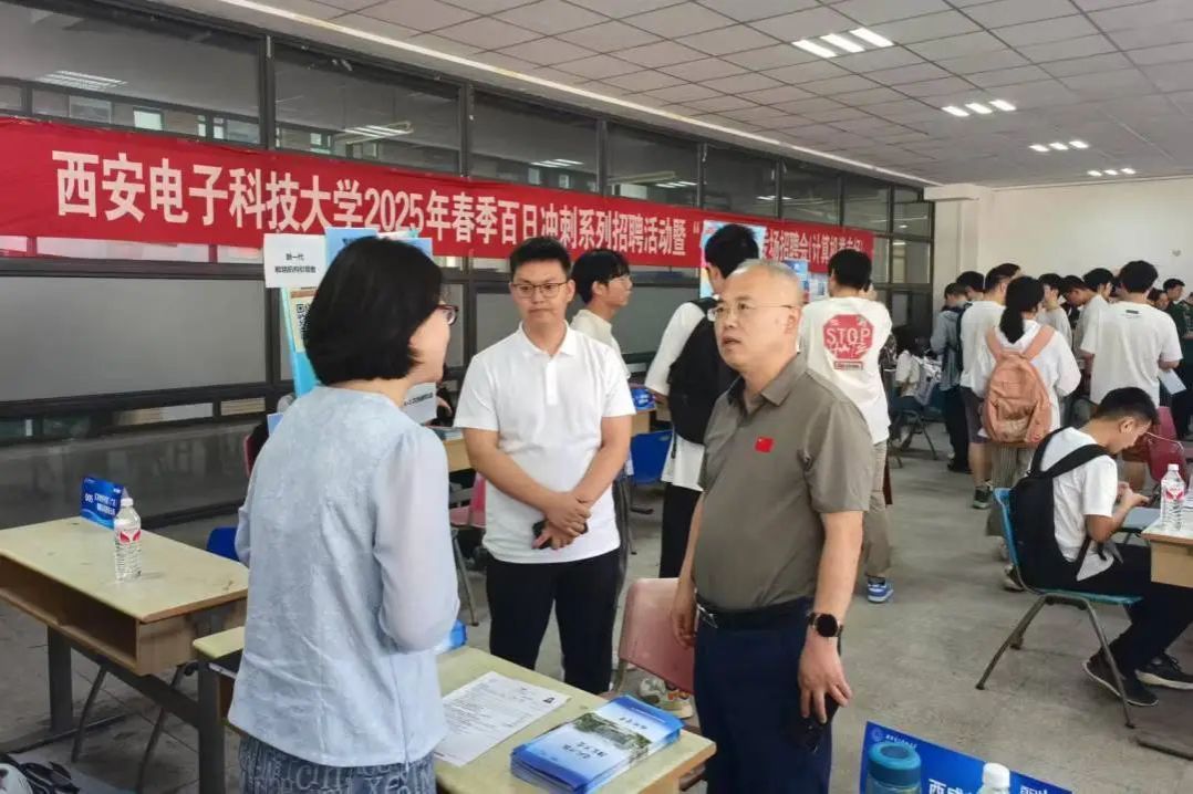 五月的西安骄阳似火,双选会现场气氛也异常热烈。毕业生们手持精心准备的简历穿梭于各展位间,积极了解用人单位的招聘需求并深入交流咨询。此外,本次双选会还吸引了不少低年级员工前来现场观摩,提前感受就业氛围、了解行业需求和就业形势,助力找准自身定位,做好生涯规划。