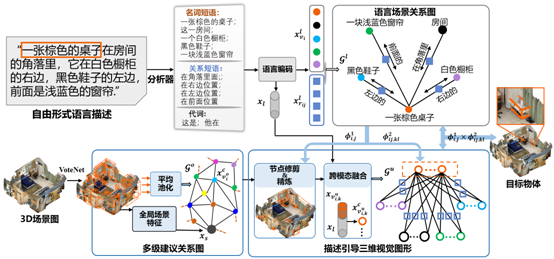 基于视觉等传感器对自然场景中的人、物感知与理解是机器人等智能装备执行高级任务的基础,本技术旨在以视觉传感器构建自然场景的语义化结构表示,形成可描述自然场景中不同类对象位置、属性、关系的三维场景结构化语义知识图。基于该语义知识图可支撑自然语言引导、问答等高级任务的智能化执行。目前团队在该领域已发表多篇高水平论文,相关研究成果已在服务机器人上开展示范应用。
